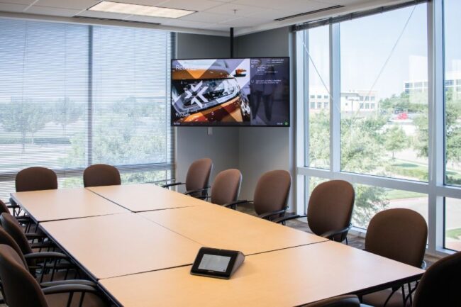 Previous Next Exeter Las Colinas, TX Need more meeting spaces, but don’t seem to have the right kind of room for it? This converted office was outfitted with a large display, wireless sharing and MS Teams video / audio conferencing. The room’s table unit turns on the room by using it’s proximity sensor and users…